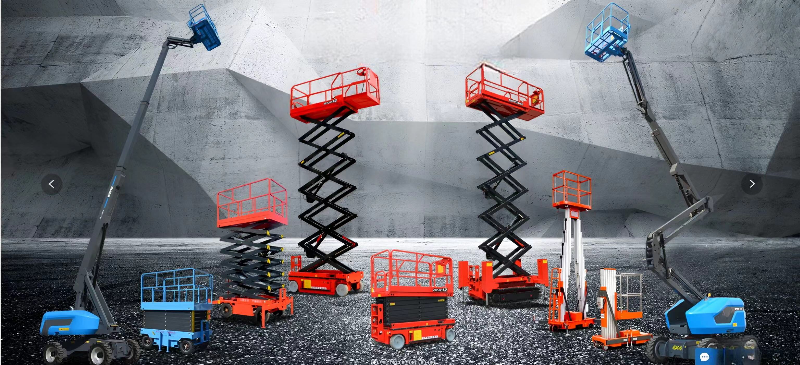 SJY series four-wheel shear mobile lifting platform, lifting height 4-20 meters, load 300kg-2000kg. SJYL series four-wheel mobile aluminum alloy elevator, load 100-200kg, lifting height 6-20 meters. Mobile boarding bridge length x width =11x2 meters, load 6-12 tons. Folding arm type lifting platform, up 12 meters, 14 meters, load 150kg. Curved arm self-propelled lift (powered by diesel engine or battery), 10-15.5 meters higher, load 200kg. Folding arm self-propelled lift, 12-14 meters higher, load 150kg. Sleeve type aerial work vehicle, 9 meters higher, carrying weight 150kg. Bending arm type aerial work vehicle (powered by diesel engine or battery), 14-28 meters higher, carrying weight 200kg.