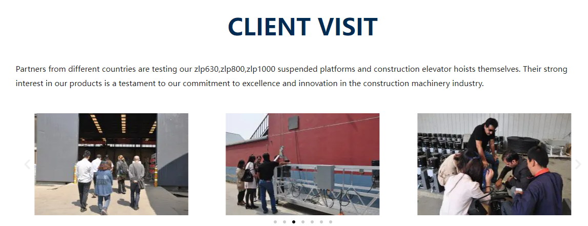 Since its establishment, the company has been supported by leaders and colleagues in the industry. It has always adhered to the business philosophy of "taking product quality as the foundation, seeking development with corporate reputation, and winning word-of-mouth with high-quality service". It insists on manufacturing high-end and high-quality electric hanging baskets, lifting platforms, and construction elevators as its responsibility, pays attention to product details, pursues high-quality service, and thus is highly praised by customers.